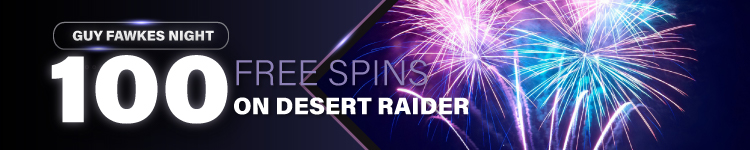Celebrate Guy Fawkes Night with LadyLuck Casino and enjoy 100 free spins on Desert Raider! Join the festivities and spin to win!