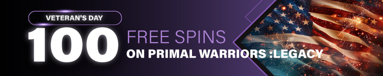 Celebrate Veteran’s Day with 100 FREE spins on Primal Warriors: Legacy! Honor the day and let the reels bring you luck. Don’t miss out—claim your free spins today!