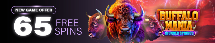 Ride the stampede in Buffalo Mania: Thunder Springs at LadyLuck with 65 free spins! Experience wild buffalo, erupting geysers, and expanding reels for your chance at epic wins.