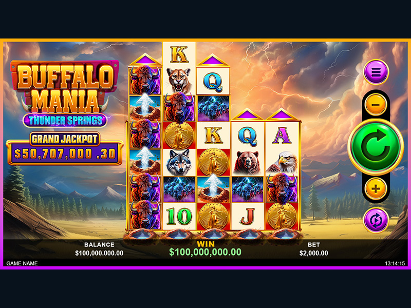 With thundering visuals, sky-splitting action, and powerful wild beasts at your side, Buffalo Mania: Thunder Springs is a stampede of unstoppable features.